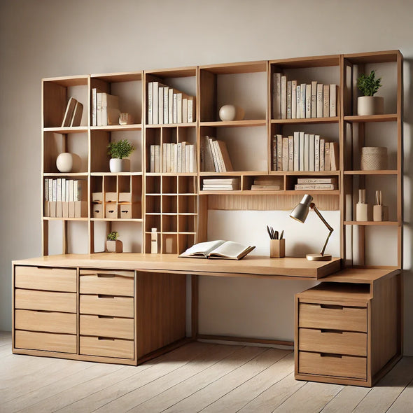 A study table with bookshelves is a space-saving, functional furniture piece that combines a work desk with storage shelves for books and essentials. Ideal for home offices, students, and professionals, it enhances organization, productivity, and aesthetics, offering a modern, ergonomic, and clutter-free workspace for efficient studying and working.