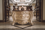 The Stunning Hand-Carved Teak Nightstand is designed to complement a variety of interiors, from classic to contemporary. Its spacious compartments and smooth surface provide ample space for organizing your essentials while doubling as a stunning decorative piece.