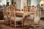 The hallmark of this dining set lies in its detailed hand-carved designs, created by master artisans. Each piece is adorned with unique patterns that reflect elegance, making it the perfect blend of function and art for any setting.