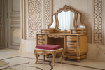 The Elegant Carved Dressing Table is designed to offer both practicality and elegance. A spacious tabletop provides ample room for your grooming essentials, while the large, high-quality mirror enhances functionality and the sense of space in your room. Multiple drawers and compartments allow for organized storage of cosmetics, jewelry, and personal items.