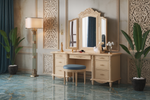 At the heart of this dressing table is its meticulously crafted hand-carved detailing, created by expert artisans. The intricate patterns are a tribute to traditional craftsmanship, bringing a sense of sophistication and uniqueness to your space. Each piece reflects dedication and skill, ensuring a one-of-a-kind furniture item.