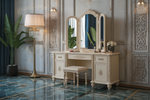 The centerpiece of this dressing table is its exquisite hand-carved detailing, created by expert artisans. Inspired by classic designs, the intricate carvings reflect dedication to traditional craftsmanship while adding a touch of sophistication. Each piece is unique, ensuring a standout addition to any room.