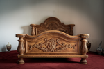 The Intricate Handcrafted Bed is created by highly skilled artisans who meticulously carve every detail by hand. The intricate patterns reflect a blend of traditional and modern aesthetics, adding depth and sophistication to any space. Each bed is unique, showcasing the natural beauty of teak wood enhanced by the artisan's touch.