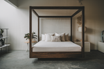 The Teak Bed Frame features a minimalist structure with clean lines and a polished surface that highlights the natural beauty of teak wood. Its rich grain and warm tones add a touch of elegance to any bedroom, while its streamlined design creates a calm and clutter-free atmosphere.