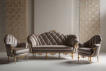 The intricate hand-carved patterns on this sofa set are a testament to the skill and precision of experienced artisans. These stunning details enhance the overall aesthetic, making it a centerpiece that elevates any space with sophistication.