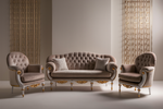 This sofa set showcases intricate hand-carved patterns created by skilled artisans. The elegant designs add refinement and charm, making it a stunning focal point in any living space.