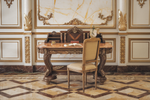 This ornate study table and chair enhance any setting, whether it’s a home office, a high-end resort suite, or a professional workspace. Its versatile design complements both modern and traditional interiors.