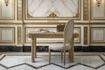 Whether placed in a contemporary home office, an executive suite, or a luxury resort, this study table and chair set adds a regal touch to any environment.