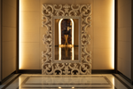 The hand-carved patterns reflect rustic design principles, emphasizing organic textures and timeless motifs. Each carving is created with precision by skilled artisans, adding character and depth to the frame. These intricate details make the frame a functional yet decorative centerpiece that enhances the ambiance of any room.